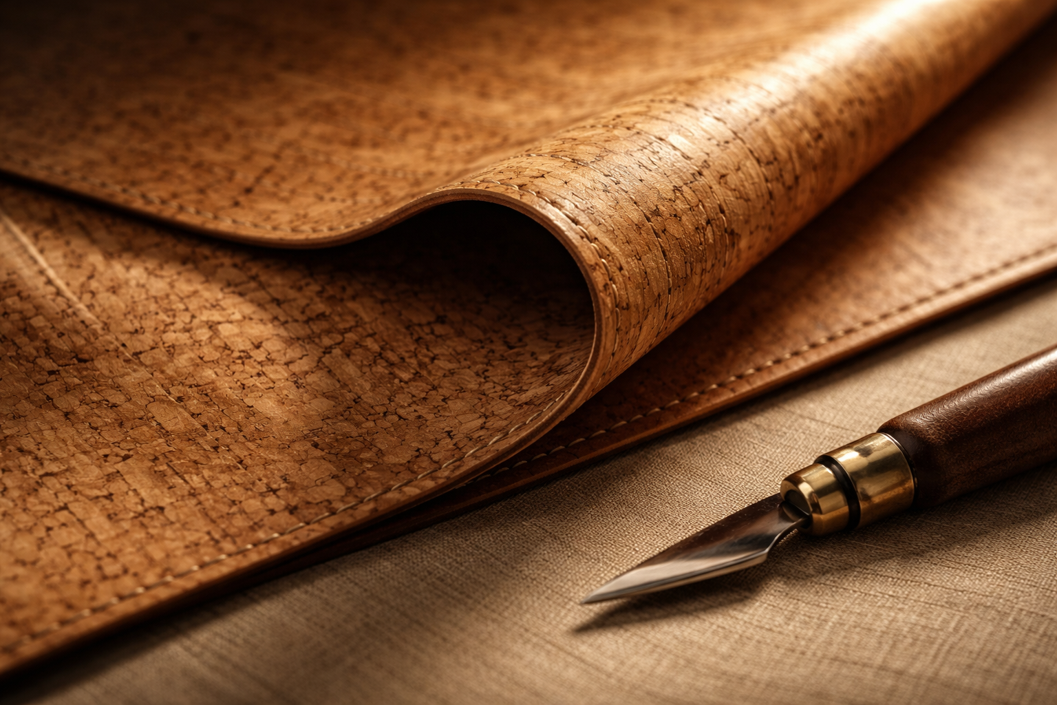 Pour les personnes souhaitant aller plus loin, j'organise des stages spécialisés autour des techniques de coupe, d'assemblage et de couture du liège. Un enseignement précis et bienveillant pour développer votre créativité.