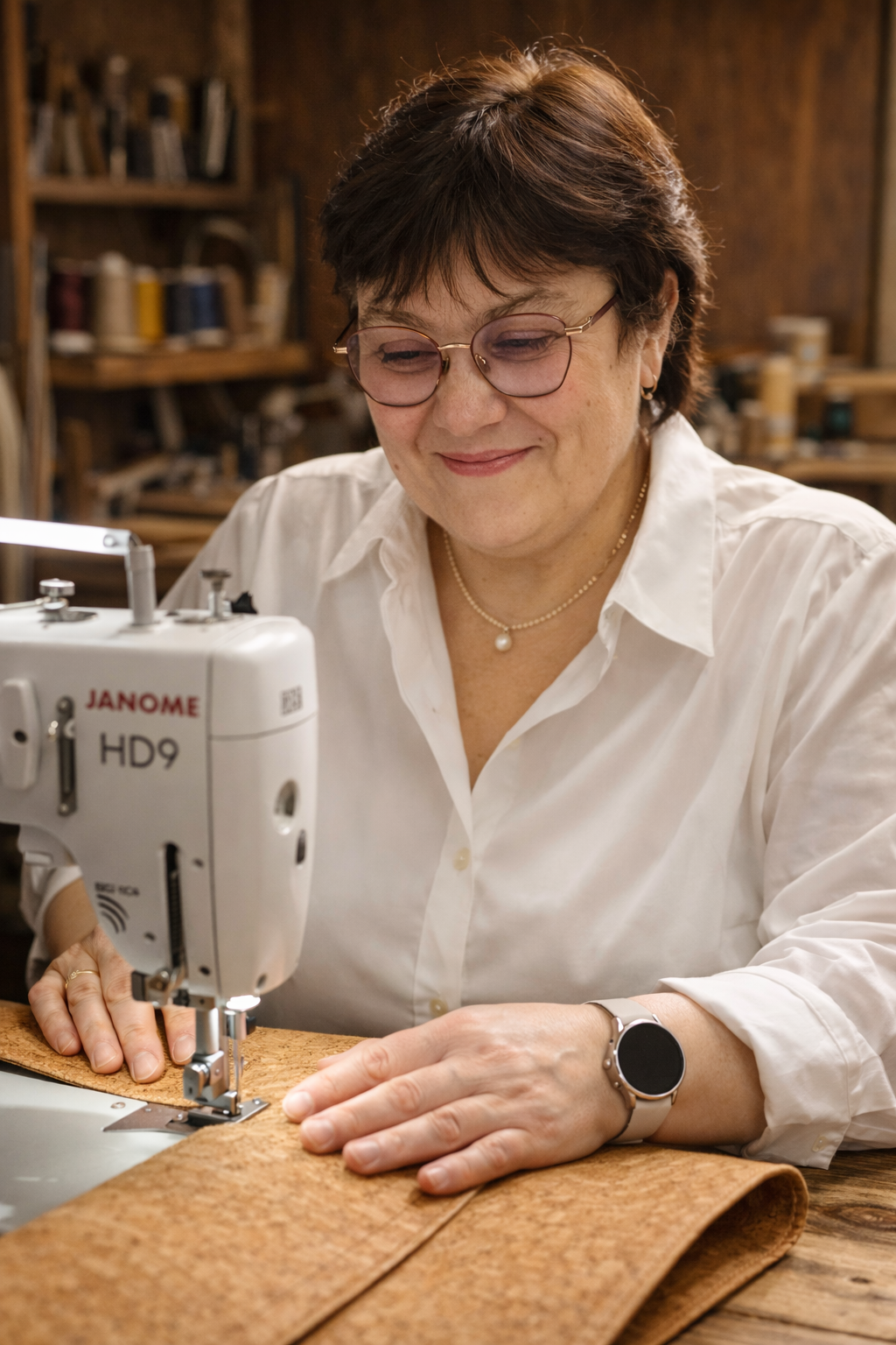 Christine — artisane d'art, titulaire d'un CAP couture floue, je mets mon savoir-faire au service d'une matière d'exception : le liège. Dans mon atelier, je crée sacs et accessoires faits main avec une exigence constante : des lignes justes, des finitions soignées, et une élégance durable.